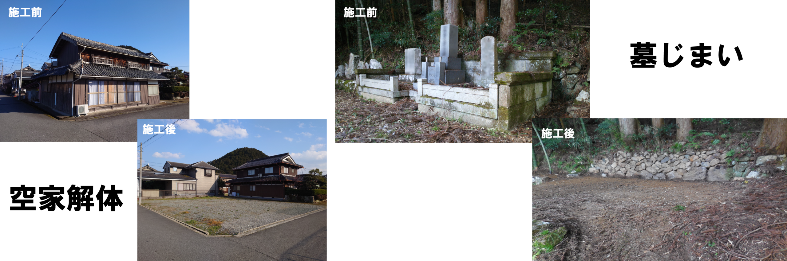 私たちは墓石関連工事・墓終い・仏壇終い・空家解体工事・遺品整理等を